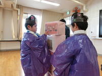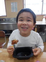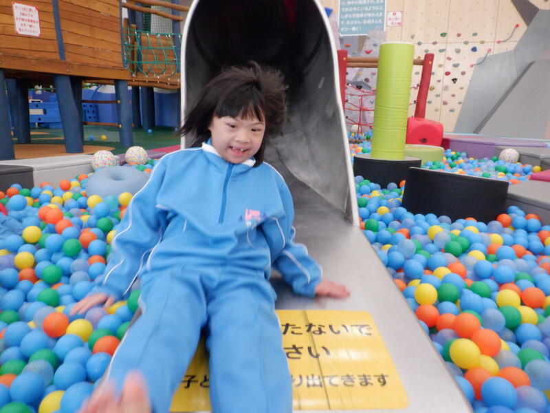 大きな滑り台やトランポリンなどの遊具、おもちゃがたくさんあり、子どもたちはワクワク・ドキドキでした。靴と靴下を脱ぎ、スタート!順番や決まりを守って、ゆらゆら揺れる橋を慎重に渡ったり、ブランコに揺られたり、大きな滑り台を滑ったりして楽しみました!学校へ帰った後は、デリバリーのお弁当で好きなからあげやハンバーグなどをたくさん食べました!