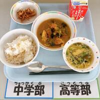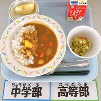チキンカレーにりんごとみんなが好きなメニューなので、給食でおなかを満たして、午後からの部の活力にしてもらえたらな…と!