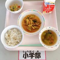 麦ごはん 高野豆腐のうま煮 チンゲン菜の炒め物 わかめのみそ汁 牛乳