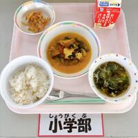 ナムルにスープとごま油が使われている料理が多かったためか、給食室からいい匂いが…給食の前から食欲をそそられました(笑)
