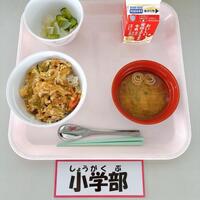 あぶ玉丼 ごぼうサラダ 赤だし 牛乳