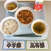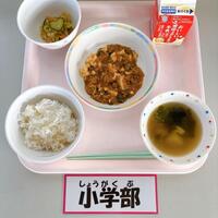 麦ごはん 麻婆豆腐 切干大根の中華和え わかめスープ 牛乳