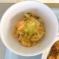 今日の給食はお酢を使ってさっぱりと食べられるあんかけ卵焼きと炒めなますでした。