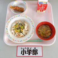ばら寿司 ちくわの磯辺あげ ばち汁 牛乳