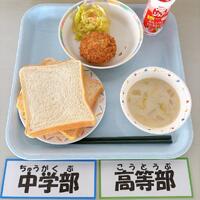 今日は、中学部のリクエストメニューということで、コロッケサンドのようにして楽しめる献立にしてみました!