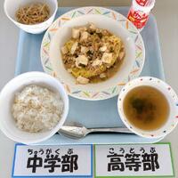 給食メニューとしても人気な麻婆豆腐と麺のコラボレーションということで、いつもより心なしか子どもたちの箸のすすみが良く見えました^^