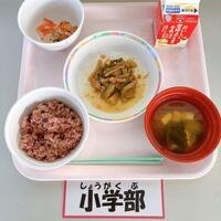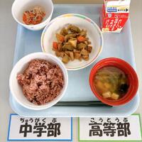 あずきごはん 煮しめ 紅白なます 豆腐のみそ汁 牛乳