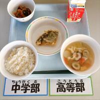 今日は、食育献立ということで、旬の食材と卒業生の育てたお米を取り入れた献立になっています。