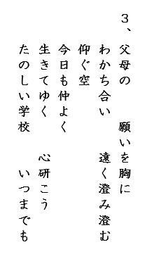 上に向かう3つの円は校訓である「自主・友愛・参加」を内包し、若葉は未来に向かって成長する児童・生徒の姿を表している。 それらを支える対の形は、人の輪を抽象化したものである。