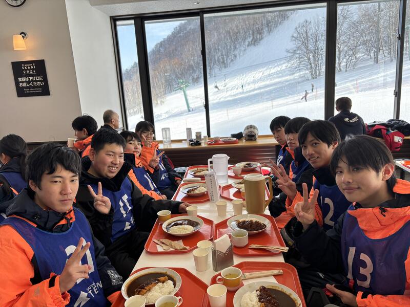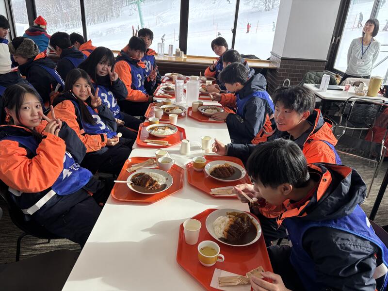 昨日のスキー・スノーボード実習で、筋肉痛もありますが、ご飯を食べてみんな元気にスキー場へ向かいます。