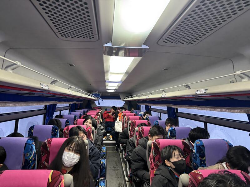 2年生修学旅行 2日目④ 投稿日時 : 01/14 氷上西高 スキー・スノーボード実習が終わり、アサヒビール園に向かっています。 午後からの実習ではリフトに乗って山の上から降りてくる班が多く見られました。 明日でスキー・スノーボード実習は終わりですが、夕食もたくさん食べて明日の実習も頑張ります。
