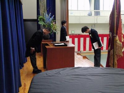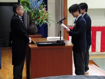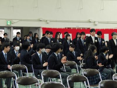 校長先生はお話の中で、「3 key words」として「想像力」「互譲」「誇り」の三つを挙げられました。3年生にとって、登校する日は残り17日、2年生は来週早々に修学旅行に出かけます。それぞれにとって短い学期ですが、有意義な3か月となるよう祈っています。