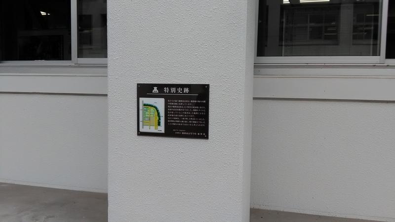 第1棟の校舎、中庭側壁面に「特別史跡」についての説明パネルを設置しました。地歴部の部員たちが中心となって調べ、考えた文面・図柄を形にしたものです。