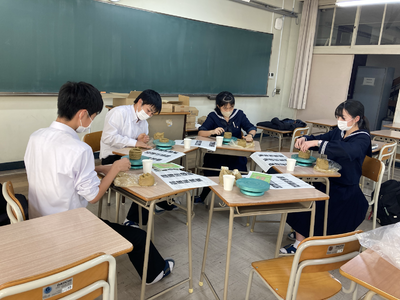 地歴部員が講師として中学生と一緒に土器・埴輪づくりを楽しみました。