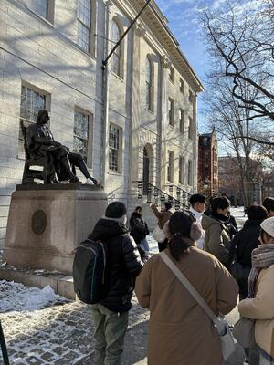 研修3日目、天気は晴れ、気温は-8℃です。今日はハーバード大学幹細胞研究所でiPS細胞とゲノム編集についての特別講義を受け、研究室の見学をしました。午後にはハーバード大学ケンブリッジキャンパスツアーに参加しました。