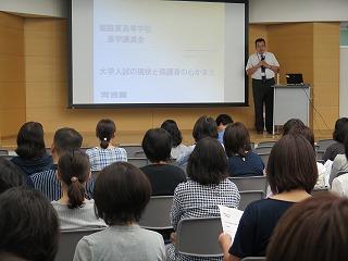 7月11日(土)、午前10時より百周年記念館2階ホールにおいて、PTA主催3年次保護者対象の進路講演会が開催されました。