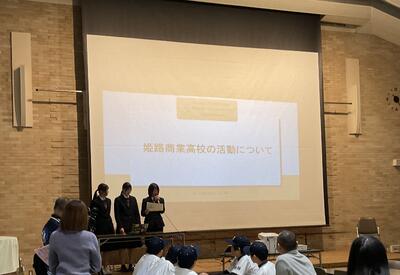 10月に行ったHIMESHO HYPER MARKET 2025 の様子や課題研究で行っているPBL活動、国際インターンシップの報告をさせていただきました