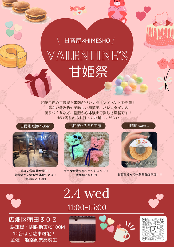姫路市の和菓子店、甘音屋様と私たち姫路商業が課題研究の授業の一環で、11月30日(日)の11時〜15時にイベントを開催することになりました!