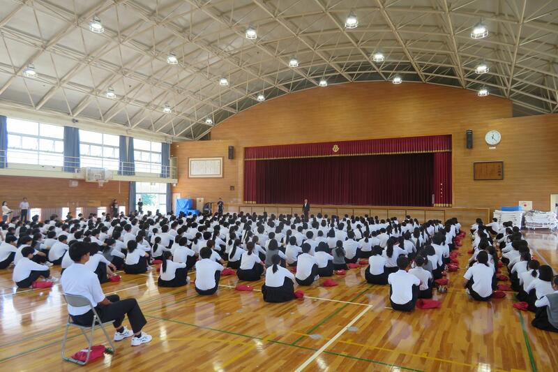 1・2年生が全員体育館に集合し、明日に向けた決起集会を行い、その後、最終準備を行いました!心を一つにがんばりましょう!