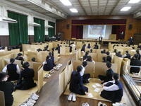 1年生は学年、クラスの親睦を深め、共同意識の向上をはかるために集団行動やグループに分かれて校内のウォークラリーをしました。