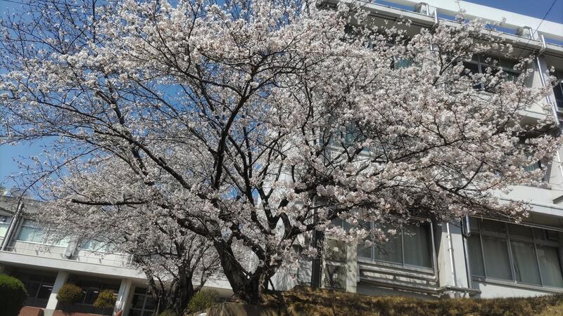 現在はまだ生徒の登校はありませんが、静かな校内で桜が美しく咲き、新年度の始まりを待っているかのようです。