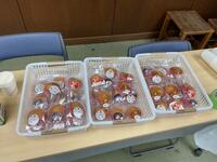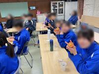 前半はドッジボール大会を行い、後半は3年2組、2年3組、1年2組がキャリア学習の授業(2、3時間目)で作ってくれたカップケーキをおいしくいただきました。
