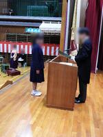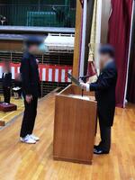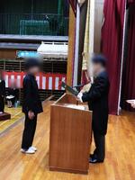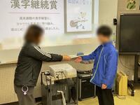 3学期の締めくくりとして、国語科より宿題への取り組みや小テストの結果に関する表彰を行いました。漢字継続賞は、週末課題の漢字の宿題を一度も忘れず遅れずきちんと提出し続けた生徒に贈られるもので、1・2年生合わせて10名が受賞しました。また、ホームラン賞は毎週の小テストで10回連続満点を達成した生徒に贈られる賞で、2名の生徒が見事受賞しました。