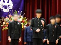 前日まで降っていた雨も上がり、晴れ渡る青空の下、高等部の卒業式が行われました。幼稚部以来お世話になった先生方や小学部・中学部の在校生に見送られながら、5名の卒業生がそれぞれの道へと旅立っていきました。中には、最長で17年間本校で学び、成長してきた生徒もいます。