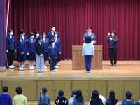 来年度の児童会・生徒会の任命式が行われました。小・中・高のそれぞれの学部の新役員が任命されました。