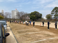 3月19日(木)、終了式・終業式や新年度を控え、「でこぼこ」になった運動場を「平ら」に整備しました。最初は、教職員だけで行っていましたが、放課後に残っていた高等部の生徒2人も手伝いに加わりました。