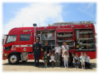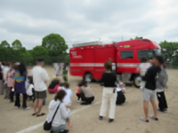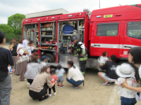 みんなが大好きな乗り物、消防車を間近で見て大喜びでした。