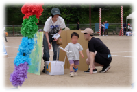 牛乳パックで作った「ます」を持って行き、先生に豆を入れてもらいました。