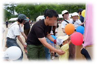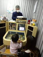 「まめまき」の歌を歌ったり、鬼の絵にボールを当てるゲームをしたり、楽しく過ごしていると…