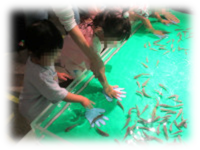 かえるの鳴き声を聞いたり、ドクターフィッシュの水槽に手を入れてみたり、本物のモノレールの展示物に乗ったりと、楽しい活動ができました。