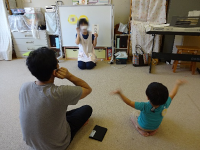 最後は「ひこうきのたいそう」を家族と一緒にしました。