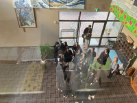 避難後は、地震の際の安全を確保する方法について学びました。校長先生からは、家に帰ってハザードマップを確認すること、家庭内の安全確認の必要性についてお話がありました。