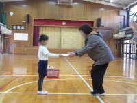 表彰式では、教頭先生からひとりずつ表彰状をもらいました。最後にごほうびももらい、ニコニコ笑顔の子どもたちでした。