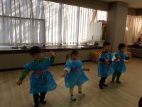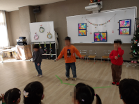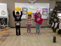 みんなで、『あわてんぼうのサンタクロース』を歌い、そのあと、クラスごとに出し物を発表しました。