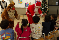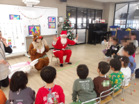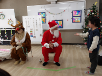 サンタクロースさんとトナカイさんは、次の幼稚園に行かないといけないとのこと・・・残念ですが、お別れです。また、来年も来てくれるといいね。