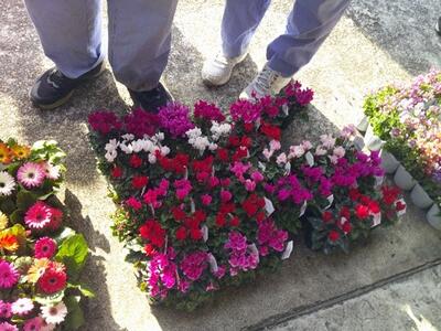 ペアになってお互いに協力し合いながら花を植えることができました。
