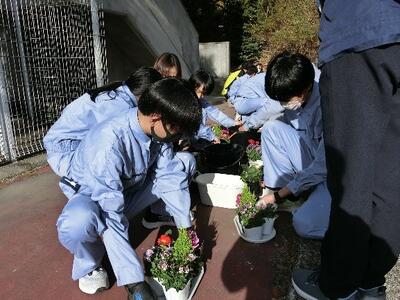 コミュニティースクール事業として姫路生花卸売市場さんに来校していただき、生花の寄せ植えを指導していただきました。5種類の冬の花をそれぞれが工夫し、素敵な寄せ植えができあがりました。