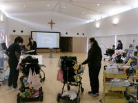 修了式 投稿日時 : 03/27 学校HP管理者 3月23日(月)、4階の多目的ホールで令和7年度の修了式が行われました。 小学部7名、中学部2名、高等部2名の児童生徒が参加することができました。 校長先生、教頭先生、看護師さんたちに温かく見守られる中、呼名に応え、頑張ったことを担任と一緒に発表したり、校長先生の話や校歌を聞いたりしました。残念ながら式に参加できなかった生徒には、居室に訪問部長と担任が出向いて修了式を行いました。ウクレレ演奏での校歌では、指を動かして応えてくれました。 Tweet {{options.likeCount}} {{options.likeCount}} {{options.unlikeCount}} {{options.unlikeCount}} 0 コメント