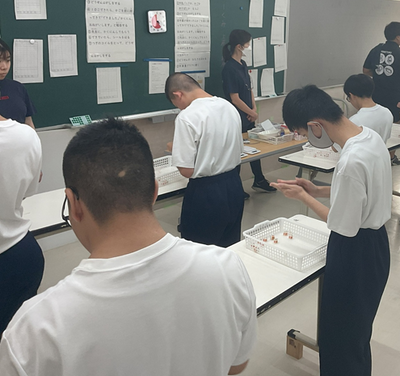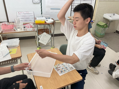 第1回の校内実習と作業内容は同じでしたが、作業速度や丁寧さ、報告・連絡・相談ができるように意識しました。生徒たちが、前回よりさらに真剣な表情で、作業に取り組む姿が印象的でした。また、就労継続支援事業所からの請負作業なので緊張感を持って作業することを心掛けました。