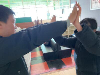 高等部2年生は、12月22日(月)にクリスマス会(2学期を振り返ろうバージョン)を実施し、2つのゲームをしました。クラス対抗プレゼント運びリレーと友だちクリスマスビンゴです。クラス対抗でペアを組んでプレゼントを運んだり、各自友だちの顔で作ったビンゴゲームを行ったりしました。大いに盛り上がり、楽しいクリスマス会となりました。最後に、学校生活の動画を見ながら2学期を振り返りました。