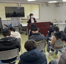 職業の授業で「ハローワーク姫路」と「職業自立センターひめじ」へ見学に行きました。就労の意識を高めるとともに、卒業後の相談窓口として活用できるよう、施設の仕組みや利用方法について職員の方からお話を伺いました。ハローワークでは、一部の生徒がパソコンで自分の条件に合う仕事を検索して、求人票を印刷する体験も行いました。初めて訪れる施設に緊張する様子も見られましたが、生徒たちは真剣に説明を聞くことができました。