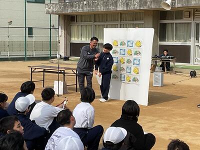 11月20日(木)、11月25日(火)、12月5日(金)の3日間にわたって、兵庫県民球団株式会社「姫路イーグレッターズ」の選手及びスタッフの方をお迎えし、野球出前講座を実施しました。午前は中学部、午後は高等部を対象に、交流を目的とした楽しいプログラムが行われました。初めにチーム代表の永嶋様より選手の紹介があり、その後、選手と一緒に準備運動やキャッチボール、そして最後はチームに分かれての交流ゲームや記念撮影などを行いました。また、授業時間以外にも中学部の教室でお弁当を一緒に食べたり、休み時間にはキャッチボールをして遊んだりするなど、選手と一緒に楽しいひとときを過ごすこともできました。生徒たちは、選手との交流を通して、スポーツの楽しさや友だちと協力することの大切さを学び、「たのしかった!」「またやりたい!」という声がたくさん聞かれるほど、思い出に残る楽しい出前講座となりました。