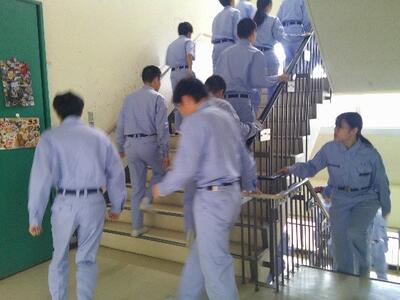 職業の学習中に地震警報が鳴り、作業を中断して安全確保を行いました。次に津波接近の放送を聞いて、分教室棟の一番高い4階に全員が避難しました。点呼確認後教頭先生からお話がありました。次回は姫路別所高校と合同で避難訓練を行う予定です。