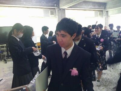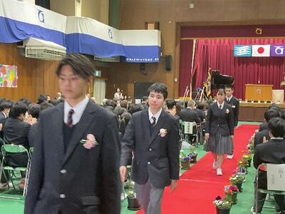 昨日、分教室で最後の一日を終えて、今日は天候にも恵まれ晴れやかな卒業式を迎えました。卒業式では、本校の高等部の生徒から順番に卒業証書が授与されました。