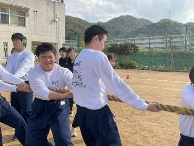 10月31日(金)に予定していた高等部2年の体育参観は、雨天のため延期となり、11月7日(金)の午後に本校グラウンドで実施しました。今年のスローガンは「ライラック(友情・青春・思い出)」。生徒たちはこれまでの練習の成果を発揮しようと笑顔で取り組みました。ラジオ体操のあと行われた綱引きでは、なんと保護者の方にも参加していただき、大きな掛け声と声援に包まれながら会場が一体となって盛り上がりました。続くクラス対抗リレーでは、バトンをつなぐごとに歓声が高まり、最後まで全力で走り抜ける姿に温かい拍手が送られました。学年演技「タオルパフォーマンスダンス」では、息の合った動きと笑顔が印象的で、オリジナルTシャツ、赤いお揃いのタオルも輝いていました。秋空の下、仲間や保護者とともに「友情・青春・思い出」を感じるひとときとなりました。保護者の皆さま、温かいご声援をありがとうございました。