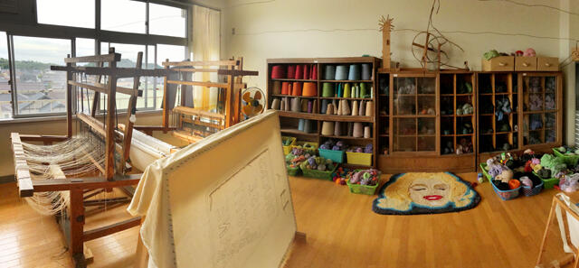 | ■織り実習室 機織りもの、タペストリーなどを学ぶ。 |